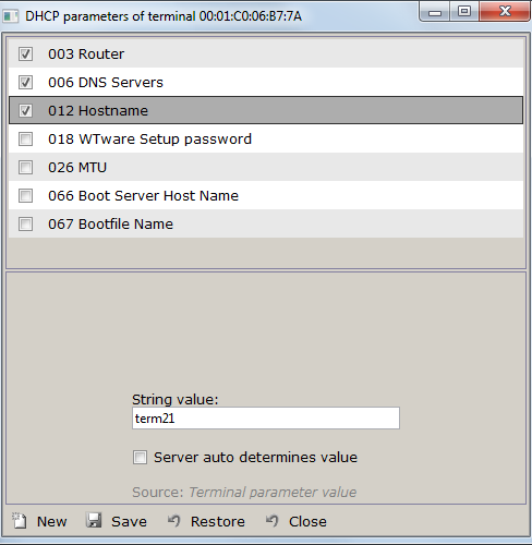 WTware DHCP may work through built-in router DHCP Relay. Before configuration firstly boot terminal. If router DHCP Relay is configured correctly, terminal sends request to WTware DHCP service. DHCP receives request and adds terminal to WTware configurator list of terminals.