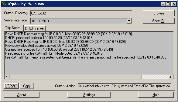 On the tftpd32 utility tftp tab these lines should appear after that: